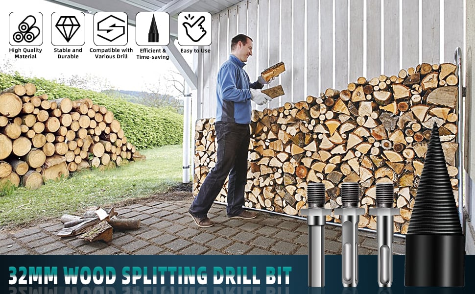 - 🔩【Versatile Drill Bit Set】This 32mm wood splitter drill bit set comes with 3 connecting rods( Square + Round + Hex Shank) and compatible with various power drills. Ideal for home, outdoor, camping, and farm use.