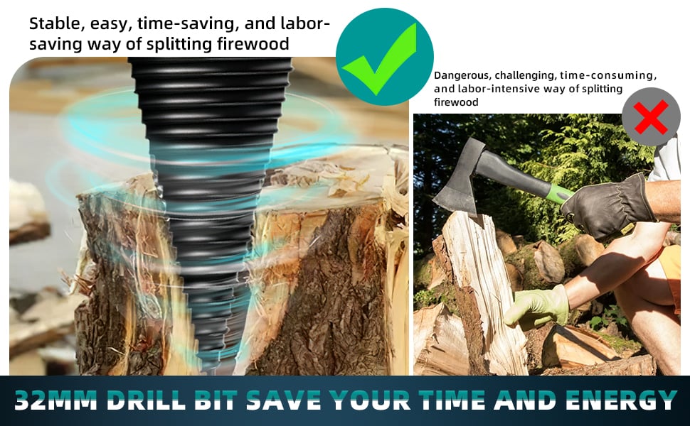 - 🤝【Great Customer Service】 If you have any questions during the use of firewood drill bit wood splitter, please feel free to contact us and we will do our best to assist you.
